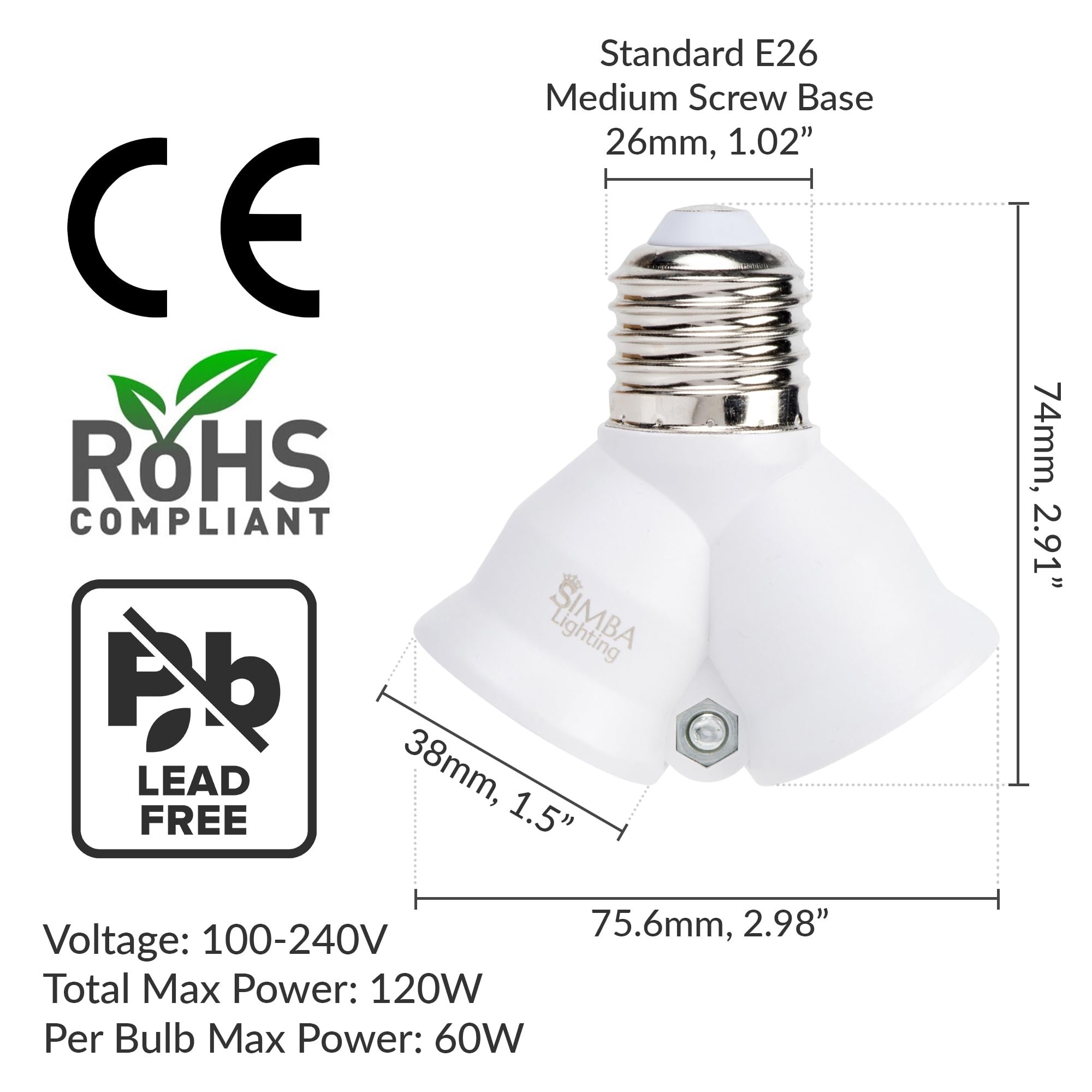 - E26 Light Bulb Socket Adapter Splitter to 2 Heads